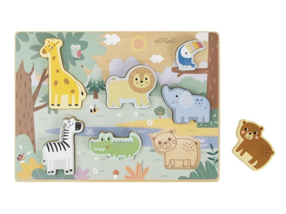 Vkládací puzzle pro děti s oblíbenými zvířátky - žirafou, zebrou, lvem, krokodýlem, medvědem, slonem a tukanem, zavede děti do ZOO. S dřevěnou hrací deskou a dřevěnými puzzle dílky v podobě zvířátek děti potrénují motorické dovednosti, koordinaci očí, logické myšlení, naučí se trpělivosti a soustředit se.. NoName není konkrétní značka nebo výrobce, ale spíše označení pro generické produkty, které nejsou spojeny s konkrétní známou značkou. Dodavatel: eD system a.s., Novoveská 1262/95, 709 00 Ostrava - Mariánské Hory, CZ