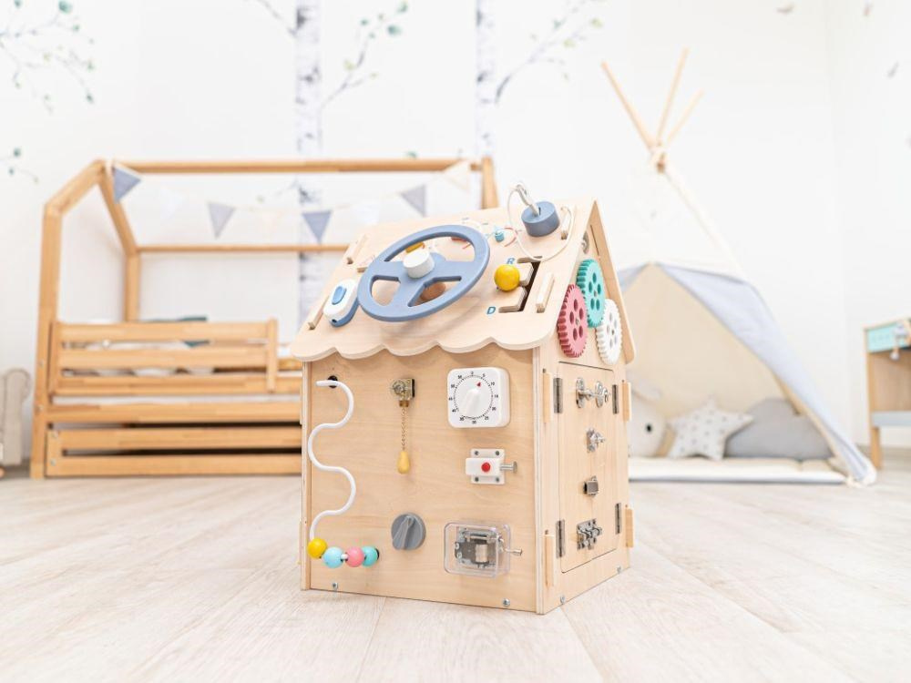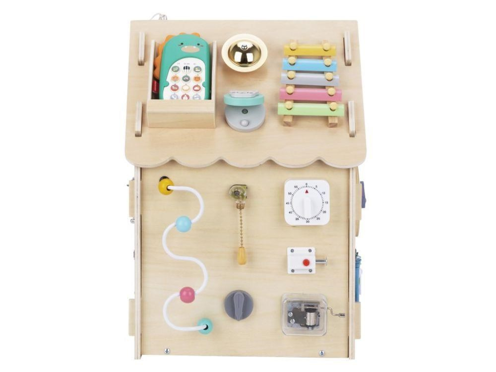 Domeček activity board v přírodním (natur) provedení, s montessori a hracími prvky, s volantem a dalšími zajímavými doplňky láká děti k prozkoumání, ke hře a k učení se. Dřevěný activity board domeček je hračkou i výukovou pomůckou. Při hře děti přirozeným způsobem zdokonalují své dovednosti, učí se novým a užijí si spoustu zábavy.. NoName není konkrétní značka nebo výrobce, ale spíše označení pro generické produkty, které nejsou spojeny s konkrétní známou značkou. Dodavatel: eD system a.s., Novoveská 1262/95, 709 00 Ostrava - Mariánské Hory, CZ