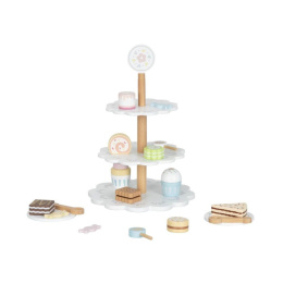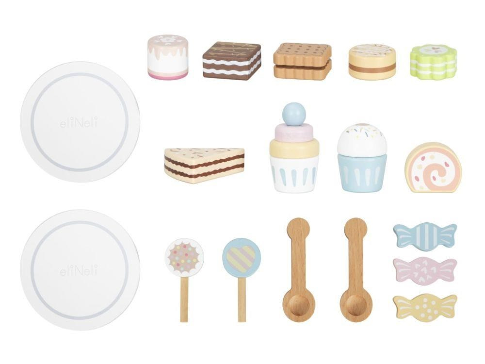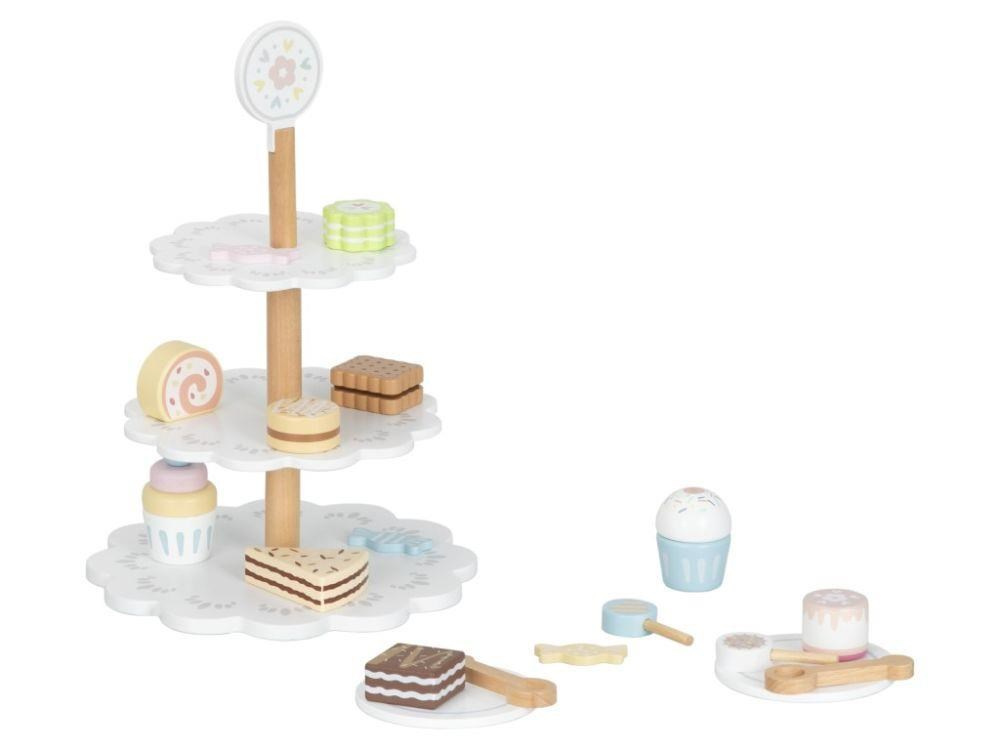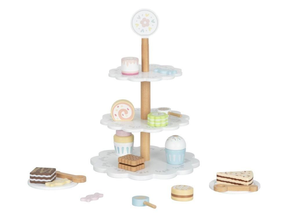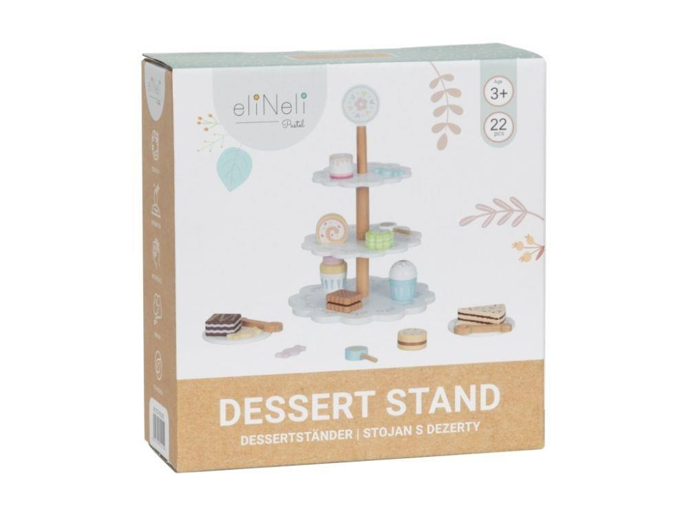 Dřevěný patrový stojan s lahodně vypadajícími dřevěnými zákusky a cukrovinkami je jako stvořený pro oslavy a čajové dýchánky uspořádané pro rodiče, kamarády i oblíbené plyšáky. Dřevěný stojan s bohatým příslušenstvím je skvělým doplňkem do dětské kuchyňky i obchůdku. Děti si mohou zahrát na cukráře i prodavače, rozvíjet svou fantazii a zdokonalovat dovednosti.. NoName není konkrétní značka nebo výrobce, ale spíše označení pro generické produkty, které nejsou spojeny s konkrétní známou značkou. Dodavatel: eD system a.s., Novoveská 1262/95, 709 00 Ostrava - Mariánské Hory, CZ