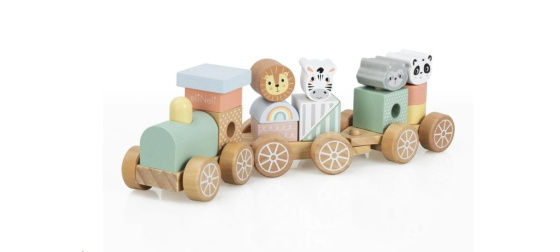 Dřevěný vláček pro děti, s kostkami a zvířátky ze ZOO, je krásnou multifunkční hračkou i dekorací do dětského pokoje. Jemné pastelové barvy propůjčují vláčku lákavý vzhled a díky neutrálním barvám je vhodným dárkem pro holčičky i kluky. Dřevěné kostky a oblíbená zvířátka mohou děti povozit po svém pokojíčku i po celém domě či bytě. Děti si mohou hrát se samotným vláčkem, s jeho jednotlivými vagónky, nakládat a vykládat kostičky a zvířátka, vytvářet různé kombinace nebo si hrát se samotnými kostkami. Při hře s vláček a jeho částmi děti zdokonalují motorické dovednosti, koordinaci očí a rukou, logické myšlení, rozvíjí logické myšlení a kreativitu.