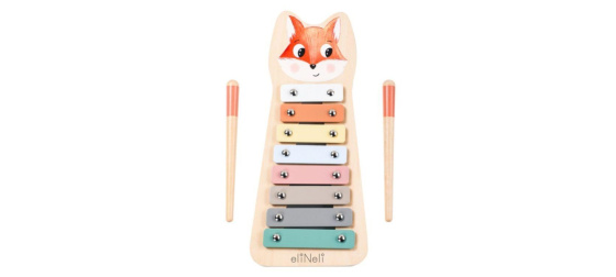 Roztomilý dřevěný xylofon s motivem lišky okouzlí děti jemnými pastelovými barvami. Kovové destičky na liščím bříšku se při úderech dřevěnou paličkou (součástí balení jsou 2 paličky) rozezní a přenesou malé hudebníky do světa tónů a barev hravou a zábavnou formou.