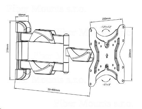 Držák LED plazma LCD televize Fiber Mounts DT742 Kvalitní a levný držák pro zavěšení Tv 13-42 palců na stěnu, otáčení do stran, náklon, nastavitelná vzdálenost, korekce roviny, krytky na kabeláž Výborný poměr kvality a ceny dělá z držáku Fiber Mounts DT742 jeden z nejprodávanějších držáků na českém trhu. Snadné a bezpečné zavěšení všech typů a značek televizorů s úhlopříčkou 13-42 palců, snadné nastavení do požadované polohy - otáčení do stran, náklon, vzdálenost od zdi, korekce roviny. Ocelová konstrukce držáku je osazena designovými krytkami pro fixaci kabeláže. Dodáváme včetně instalačního materiálu. Držák na LED plazmové a LCD televize s úhlopříčkou 13-42 palců, otočný do stran, sklopný, délkově nastavitelný, VESA standard, nosnost 25kg, vynikající poměr kvality a ceny, kryty kabeláže, záruka 3 roky - Fiber Mounts DT742 Technické údaje: nosnost 25kg podporuje VESA standardy 75x75 až 200x200 doporučená úhlopříčka televizoru 13-42 palců otáčení do stran +/- 90° náklon nahoru nebo dole +/- 12° korekce roviny +/- 3° nastavitelná vzdálenost od zdi v rozmezí 59 až 400mm designové krytky na fixaci kabeláže výborná kvalita ocelová konstrukce zajištění Tv proti vysazení snadná a rychlá montáž barevné provedení černé záruka 3 roky Držák Fiber Mounts DT742 podporuje VESA standardy: VESA 75x75 VESA 100x100 VESA 200x100 VESA 200x200.