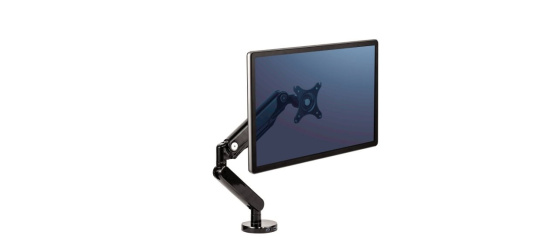 • nezávislé nastavitelné rameno pro 1 monitor • usnadňuje organizaci pracovního prostoru • moderní design • technologie plynových pružin umožňuje snadné nastavení monitoru pro práci a sdílení obrazovky • konektory USB 3.0 umožňují snadné připojení oblíbených zařízení • intuitivní systém správy kabeláže minimalizuje nepořádek • max. 360 ° otáčení obrazovky, max. sklon (pravý, levý) 180 ° • max. stoupání (nahoru, dolů) + 85 ° / –15 ° • max. výška 39 cm, dosah 50 cm • montážní systém VESA, splňuje normy VESA 75 × 75 a 100 × 100 • snadná montáž ke stolu pomocí svorky nebo průvlaku ( svorka 2–12 cm, průvlak 2–10 cm ) • barva černá • materiál kov • hmotnost 5,4 kg • doporučeno Mezinárodní akademií pro ergonomické produkty FIRA™. Fellowes, Inc., 1789 Norwood Avenue Itasca, IL 60143-1095 USA, inquiries@fellowes.com