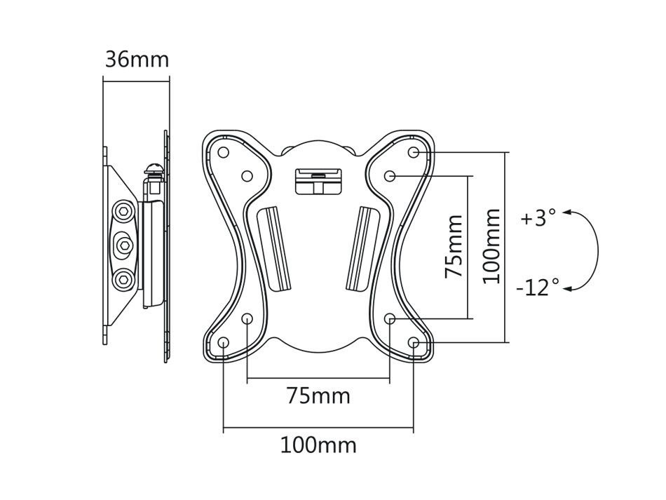 Sklopný držák na monitory a Tv Fiber Mounts M7C15 Nástěnný držák monitoru nebo Tv 13" až 30", náklon +3° až -12°, VESA 75x75 a 100x100, vzdálenost od zdi 36mm, nosnost 25kg Nástěnný držák pro zavěšení monitoru nebo televizoru s úhlopříčkou 13-30", možnost náklonu +3° až -12°, VESA standard 75x75 a 100x100, nosnost 25kg. Držák má vynikající, velmi pevnou a bezpečnou konstrukci. Barevné provedení černé, montážní materiál součástí balení. Sklopný držák na monitor nebo malou televizi Fiber Mounts M7C15 Technické údaje: nosnost 25kg podpora VESA standardu 75x75 a 100x100 doporučená velikost obrazovky 13" až 30" možnost náklonu +3° / -12° vzdálenost od zdi 36mm korekce roviny zajištění proti vysazení velmi pevná, bezpečná konstrukce barva černá záruka 5 let Nástěnný sklopný držák na monitor nebo menší televizi Fiber Mounts M7C15 Držák monitoru nebo Tv M7C15 podporuje VESA standard: VESA 75x75 VESA 100x100 Nástěnný držák Fiber Mounts M7C15 je vhodný pro zavěšení všech typů televizorů a monitorů, které mají hmotnost do 25kg a podporují VESA standard 75x75 nebo 100x100. Úhlopříčka obrazovky není vůbec podstatná.. Fiber Mounts s.r.o., Nádražní 1296/4 69601 Rohatec Česká republika, mailto: info@drzakyastolky.cz