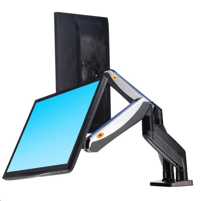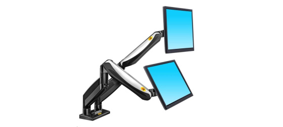 Nastavitelný držák pro dva monitory o hmotnosti od 2 kg do 8 kg, TOP design a kvalita Velmi kvalitní stolní držák pro zavěšení 2 monitorů na stolovou desku v kanceláři, pracovně nebo domácnosti. Monitory je možné nezávisle otáčet do stran, naklápět, posouvat. Možná je i úprava výšky od stolové desky, horizontální i vertikální otáčení obrazovky, korekce roviny. Pouze jednou nastavíte hmotnost Vaších monitoru na držáku a dále už nebute muset používat žádné nářadí. Velmi pěkný design, kvalitní bezpečná konstrukce, snadná manipulace. Polohovatelný stolní držák na dva monitory do kanceláře Technické údaje: celková nosnost 16kg zavěšení 2 monitorů s hmotnosti 2-8kg doporučujeme na monitory 19" až 30" náklon +55°/-8° natočení monitoru vpravo-vlevo o 180° otáčení ramena o 360° funkce PIVOT - otočení monitoru o 360° minimální výška monitoru od pracovní desky 230 mm (střed monitoru) maximální výška monitoru od pracovní desky 530 mm (střed monitoru) maximální tloušťka pracovní desky 90 mm nastavitelná vzdálenost do 625 mm Korekce roviny 2x USB port Systém pro skryté vedení kabeláže dva typy uchcení ke stolu - na okraj nebo skrz desku vestavěná pružina pro snadné nastavení výšky vysoká kvalita s důrazem na detail moderní design vyrobeno z hliníku a slitiny oceli snadná a rychlá instalace barevné provedení černé+chrom záruka 5 let Stolní držák F185A podporuje VESA standard: 75x75 100x100. Fiber Mounts s.r.o., Nádražní 1296/4 69601 Rohatec Česká republika, mailto: info@drzakyastolky.cz