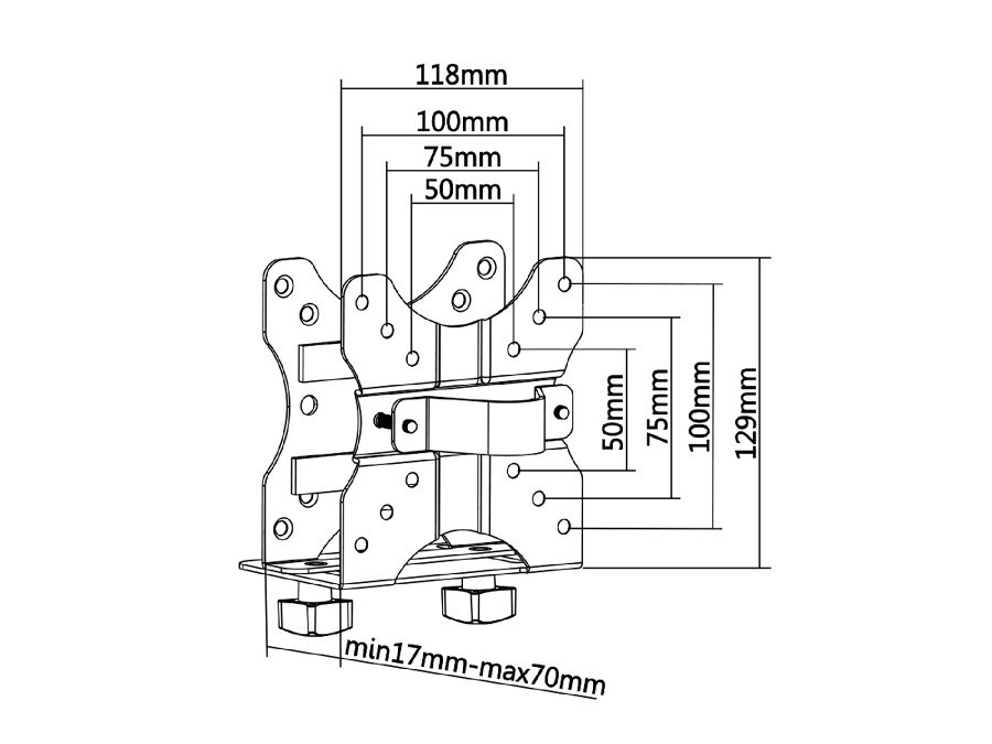 Držák na mini PC NUC Fiber Mounts M7C20 Univerzální držák na Intel NUC, Mini Mac CPU, mini PC a atp. Uchycení na držáky, za monitor, pod stolovou desku, zeď, tyč až 55mm. Nosnost 5kg. Univerzální držák pro uchycení malých PC na držák nebo na stůl. Ideální na Intel NUC, Mini Mac CPU a další podobné malé PC. Držák má nastavitelnou šířku dle potřeby od 17mm do 70mm - PC s větší šířkou jak 70mm není na držák možné uchytit. Držák Fiber Mounts M7C20 je možné uchytit na televizní držák přímo za monitor - podporuje VESA standardy, na nosnou tyč držáku pomocí objímky nebo kdekoliv na stůl. Držák je velmi bezpečný, zatížit ho můžete zařízením o hmotnosti až 5kg. Na držák na Intel NUC poskytujeme záruku 5 let. Univerzální držák na mini PC, NUC, MAC Mini CPU apod, uchycení na držák, za monitor, na stůl nebo na zeď - Fiber Mounts M7C20 Technické údaje: nosnost 5kg nastavitelná šířka držáku 17mm až 70mm ideální na Intel NUC a podobné uchycení na držák, tyč o průměru do 55mm nebo na stůl podporuje VESA standardy 50 / 75 / 100 bezpečná a pevná konstrukce materiál ocel zajišťovací páska pro zajištění CPU na držáku barevné provedení černé záruka 5 let Možnost uchycení na držáky nebo za monitory s VESA standardem: VESA 50x50 VESA 75x75 VESA 100x100 Držák na mini PC, Intel CPU, MAC Mini CPU apod. s uchycením na držák za monitor - Fiber Mounts M7C20 Možnost uchycení na tyč pomocí objímky. Vhodné na tyče o průměru do 55mm. Držák mini PC, Intel NUC, MAC Mini CPU apod, uchycení na tyč o průměru až 55mm - Fiber Mounts M7C20 Možnost uchycení pod stolovou desku nebo i na stěnu..