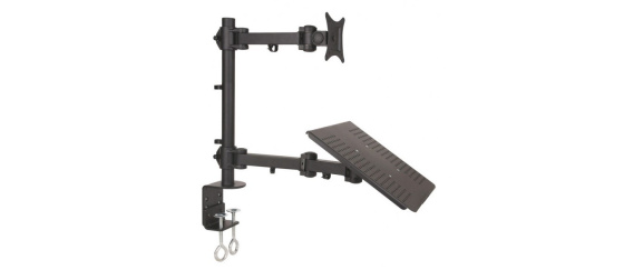 Držák notebooku nebo laptopu a monitoru Fiber Mounts FM23 Kvalitní sestava stolní držák na monitor 15-27" a držák na notebook laptop 13-17", polohovatelný, stabilní a pevný Vybavte si kancelář skvělým pomocníkem, který Vám uspoří spoustu místa a zlepší ergonomii při práci. Sestava Fiber Mounts FM23 obsahuje držák na monitory 15-27" a držák na notebooky nebo laptopy s úhlopříčkou 13-17". Držák monitoru podporuje VESA 75x75 a 100x100, lze ho otáčet do stran, naklápět, rotovat a výškově polohovat. Držák notebooku lze otáčet do stran a výškově polohovat. Barevné provedení černé, celková nosnost 20kg, celokovová konstrukce. Stolní držák na monitor a notebook do vaší kanceláře - Fiber Mounts FM23 Technické údaje: nosnost 20kg na monitory 15-27" na notebooky 13-17" VESA standard 75x75 a 100x100 otáčení do stran +/- 135° naklápění monitoru +/- 90° uchycení na stolové desky s tloušťkou 10-100mm barva černá záruka 3 roky Stolní držák na monitor a notebook do vaší kanceláře - Fiber Mounts FM23 Držák na monitory podporuje standardy VESA: VESA 75x75 VESA 100x100. Fiber Mounts s.r.o., Nádražní 1296/4 69601 Rohatec Česká republika, mailto: info@drzakyastolky.cz
