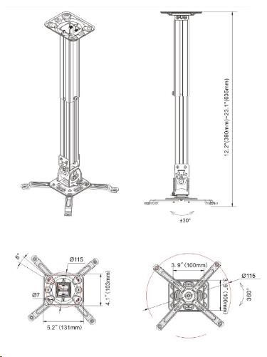 Stropní držák pro dataprojektor NB T817-60 Spolehlivý, nastavitelný stropní držák pro zavěšení projektorů Kvalitně zpraovaný držák pro projektory s možností výškového nastavení. Projektorem je možné po zavěšení otáčet o 360°, nechybí náklon +/- 20° ani systém pro vedení kabeláže. Nosnost držáku je 11 kg, design je kompletně vyveden v bílém provedení. Výhodou je možnost instaace na šikmý strop. Doporučujeme i náročnějším zákazníkům. Technické údaje: nosnost 11kg otočný o 360° náklon +/- 20° nastavitelná vzdálenost od stropu 383 - 600mm nastavení úhlu vůči stropu +/- 45° možnost instalace na šikmý strop bílé provedení vysoká kvalita pevná a odolná konstrukce systém vedení kabeláže instalační materiál součástí balení záruka 10 let. Fiber Mounts s.r.o., Nádražní 1296/4 69601 Rohatec Česká republika, mailto: info@drzakyastolky.cz