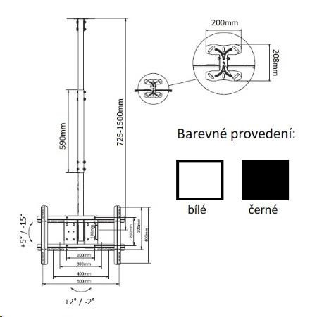 Technické údaje: maximální zatížení 68kg podpora VESA standardů 100x100 až 600x400 doporučená úhlopříčka obrazovky 32 až 60 palců nastavitelná délka 725-1500mm možnost náklonu obrazovky +5° až -15° dorovnání TV po montáži +/- 2° uchycení na strop nebo na stěnu - úchyt je možné přetočit o 90° otočný o +/- 30° vynikající kvalita moderní design barevné provedení černá záruka 5 let Držák podporuje VESA standardy: VESA 100x100 VESA 200x100 VESA 200x200 VESA 300x200 VESA 300x300 VESA 400x200 VESA 400x300 VESA 400x400 VESA 600x400. Fiber Mounts s.r.o., Nádražní 1296/4 69601 Rohatec Česká republika, mailto: info@drzakyastolky.cz