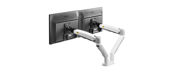 Dvoumonitorový stolní držák NB F195AW Profesionální stolní držák na 2 monitory 21-32", 3D nezávislé nastavení polohy, bílé provedení, profesionální kvalita Špičkový stolní držák pro zavěšení 2 monitorů a jejich nezávislé nastavení polohy: otáčení do stran, nastavení výšky, nastavení vzdálenosti od stolního úchytu, náklon, rotace obrazovky, korekce roviny. Různé nastavení polohy monitorů - vedle sebe na šířku, vedle sebe na výšku, pod sebou na šířku, nebo jeden monitor na šířku a druhý na výšku. Hmotnost každého monitoru musí být v rozmezí 3-9kg. Balení obsahuje 2 typy úchytů na stolovou desku, instalační materiál a návod. Barevné provedení bílé. Záruka 3 roky. Bílý držák na dva monitory, polohovatelný, profesionální kvality, záruka 3 roky - Mounts F195AWProfesionální bílý držák na 2 monitory, různé polohování monitorů, plně nastavitelný držák, TOP kvalita - Mounts F195AW Bílý držák na dva monitory, do kanceláře, pracovny, nemocnice, ordinace. Top kvalita, snadné polohování. Držák 2 monitorů Mounts F195AW Technické údaje: celková nosnost 18kg hmotnost každého monitoru musí být v rozmezí 3 ÷ 9 kg podpora VESA standardu 75x75 a 100x100 v případě potřeby za příplatek možnost rozšíření VESA na 200x100 nebo 200x200 doporučená úhlopříčka monitorů 21" až 32" nezávislé nastavení výšky: min. 220mm, max. 565mm nezávislé otáčení monitoru do stran +/- 180° nezávislé naklonění monitoru +53° až -8° nezávislá rotace monitoru - otočení monitoru na šířku nebo na výšku, korekce roviny nezávislé nastavení vzdálenosti od stolního úchytu: 0mm až 700mm uchycení na stolové desky o průměru 10mm až 90mm balení obsahuje 2 typy úchytů na stolové desky (na okraj, do prostoru) 2x USB port vynikající kvalita, krásný design snadné nastavení polohy monitorů spolehlivost, bezpečnost barevné provedení bílé, stříbrné nebo černé záruka 3 roky Mounts F195AW - bílý stolní držák pro nezávislé zavěšení a polohování dvou monitorů Dvoumonitorový stolní držák NB F195AW podporuje VESA standardy: VESA 75x75 VESA 100x100 za příplatek rozšíření na VESA 200x100 za příplatek rozšíření na VESA 200x200 Bílý držák na dva monitory Mounts F195AW Velmi pěkný bílý držák na dva monitory, nezávislé polohování každého monitoru, snadná nastavitelnost, profesionální kvalita a zpracování. Ideální držák do moderních kanceláří, ordinací, nemocnic nebo pracoven..