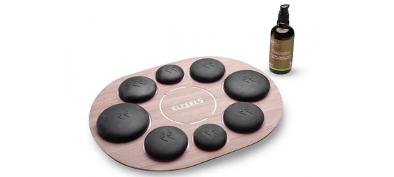 Dvě úrovně ohřevu 48°C a 55°C zajišťuje osm nezávislých topných desek, každá s vyhrazeným tepelným senzorem. Kameny jsou tak připraveny na masáž během 10 minut.