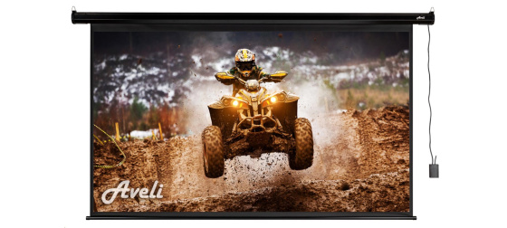 Elektrické projekční plátno AVELI, 221x125 (16:9) 100", černý tubus