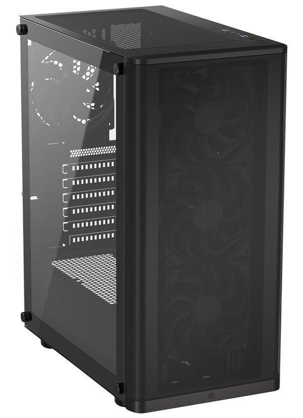 Provedení skříně:Midi Tower; Výkon zdroje (W):0; Barva skříně:Černá; Počet pozic 3.5" (HDD):1; Počet pozic 2.5" (SSD):2; Bočnice:Prosklená; Podsvícení:bez podsvícení; Vybavení PC skříně:Přední Audio panel, Přední USB panel, Průhledná bočnice.Více