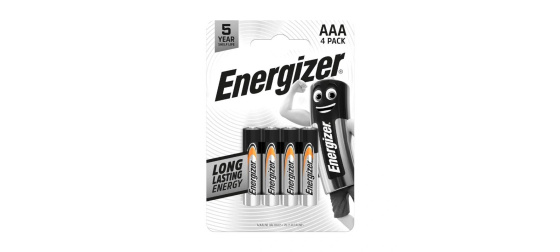 Jednorázová baterie mikrotužková (AAA), alkalický článek, napětí až 1,5 V, 4 ks v balení.