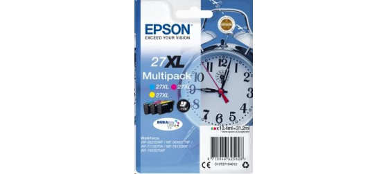 Inkoust je vhodný pro zařízení ze série Epson WorkForce - Multipack 3-colour 27XL DURABrite Ultra Ink, WorkForce WF-3620DWF, WorkForce WF-7110DTW, WorkForce WF-7210DTW, WorkForce WF-7610DWF, WorkForce WF-7710DWF