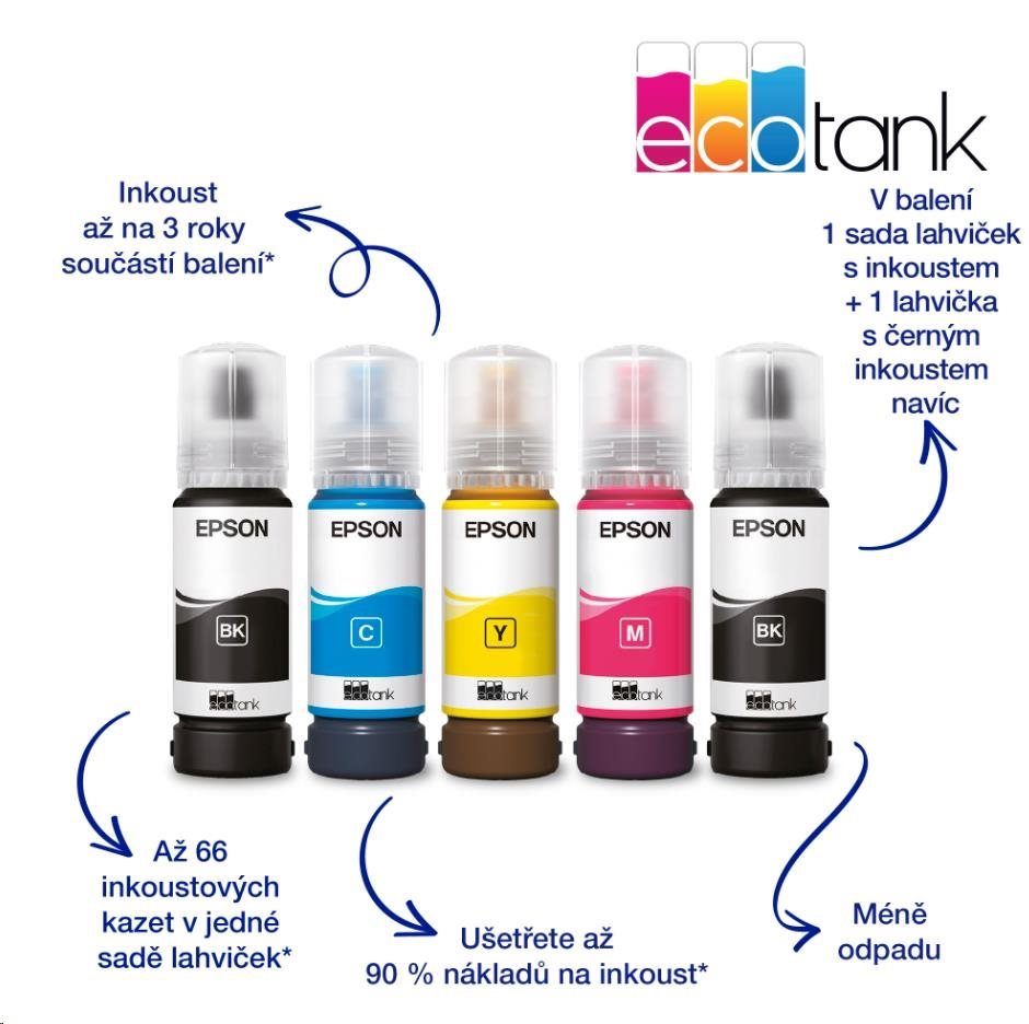Tisková technologie:Inkoustový tankový systém; Maximální formát tisku/média:A4; Skutečné rozlišení tiskárny (v DPI):1440x5760; Rozhraní tiskárny:USB, Wi-Fi; Maximální rychlost tisku (A4 za minutu):33; Standardní počet vstupních zásobníků:1; Maximální počet vstupních zásobníků:1; Funkce:Barevný tisk, Bezokrajový tisk, Oddělené náplně.Více