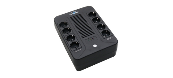 Záložní zdroj "Line interactive" EA2100P kompaktní velikosti. Konstrukce umožňuje i zavěšení na zeď Na čelním panelu vypínač ON/OFF a indikační LED
