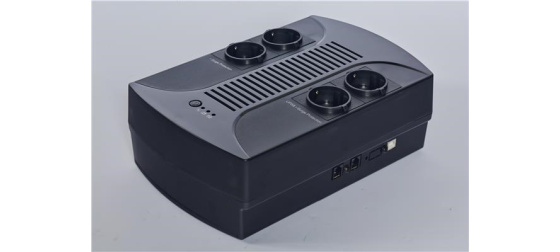 Záložní zdroj EA200plus je kompaktní velikosti, přizpůsobený i k zavěšení na stěnu. Na čelním panelu spínač ON/OFF a 3 indikační LED (provoz ze sítě - zelená, nabíjení baterie - žlutá, provoz z baterie – červená).