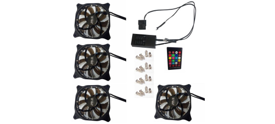 - dálkové ovládání (možnost volby barvy podsvětlení s možností vypnutí, řízení otáček ventilátorů s možností vypnutí)
