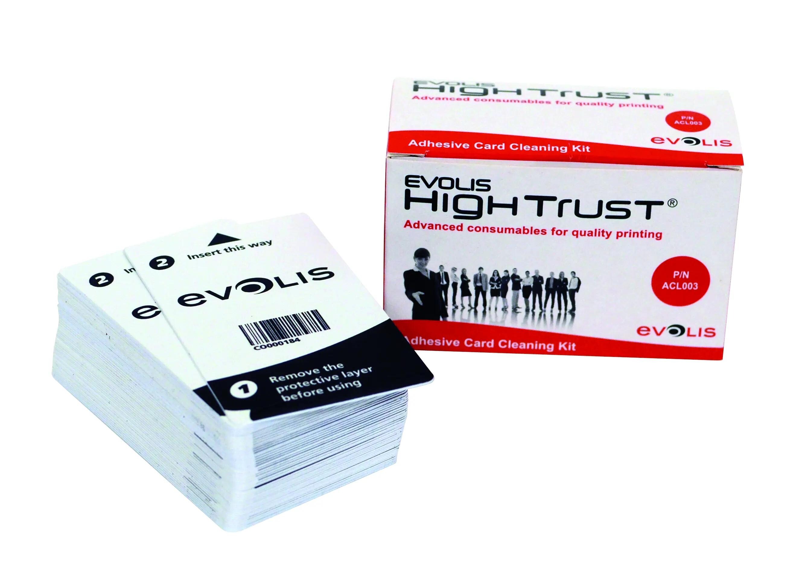 Evolis adhesive cleaning cards (ACL003) jsou profesionální čisticí karty navržené pro pravidelnou údržbu tiskáren plastových karet. Samolepicí povrch účinně zachytává prach, nečistoty a zbytky materiálu z podávacího mechanismu a válečků, čímž snižuje riziko chyb podávání a zhoršení kvality tisku.