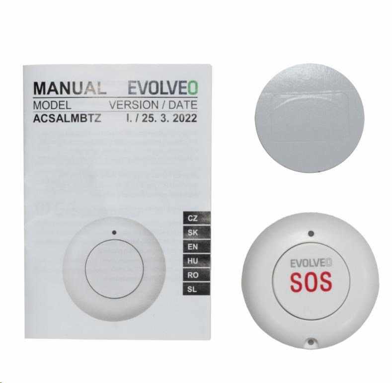 - 1× bezdrátové SOS tlačítko EVOLVEO Alarmex Pro