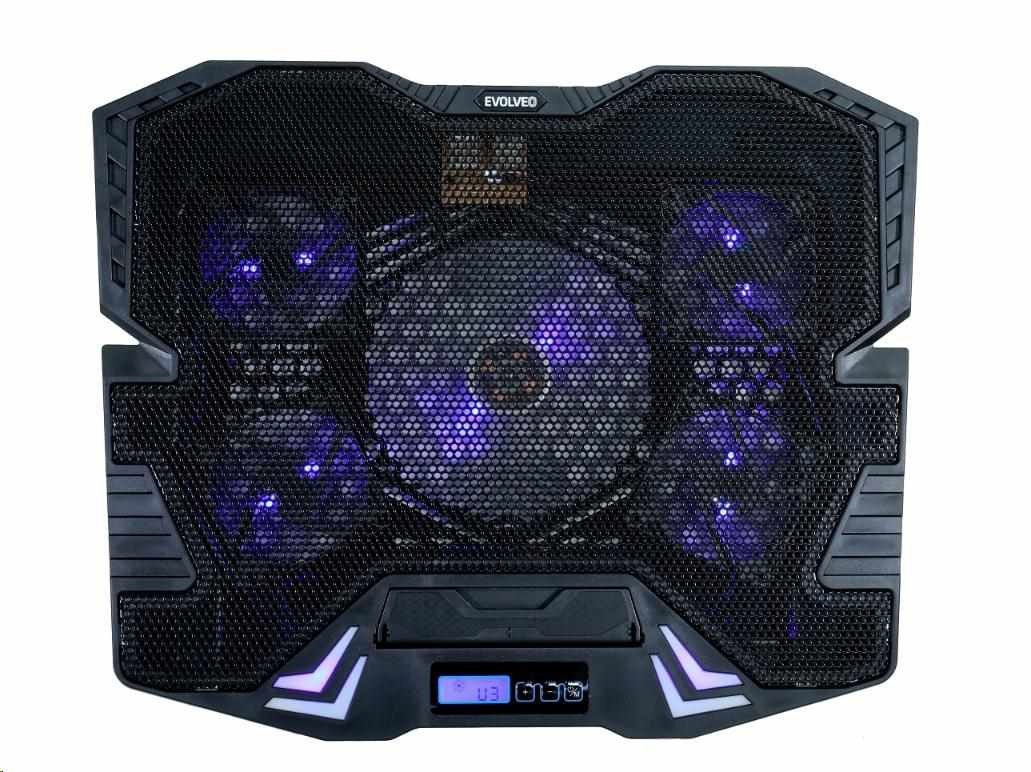 Herní polohovatelný chladící podstavec pro notebooky do velikosti 15.6". 1x 120 mm a 4x 60 mm ventilátor. 2x USB 2.0. Regulace rychlosti otáček ventilátoru, displej.