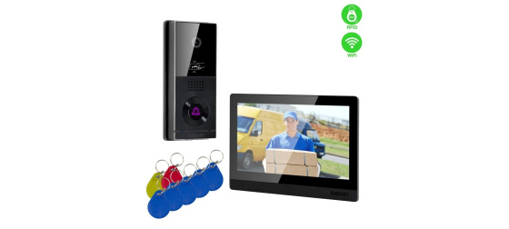 Popis EVOLVEO DoorPhone AHD10, Sada domácího WiFi videotelefonu s ovládáním dveří a RFID, černý 10" monitor, 32GB