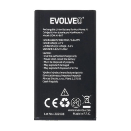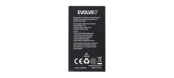 Originální baterie EVOLVEOUrčena pro mobilní telefon EVOLVEO MaxPhone A1Kapacita 1800 mAhTyp baterie: Li-IonObsah balení:Baterie