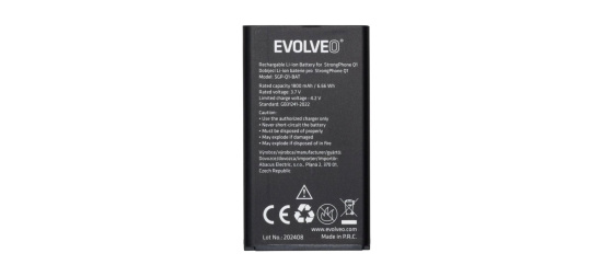 Originální baterie EVOLVEOUrčena pro mobilní telefon EVOLVEO StrongPhone Q1Kapacita 1800 mAhTyp baterie: Li-IonObsah balení:Baterie