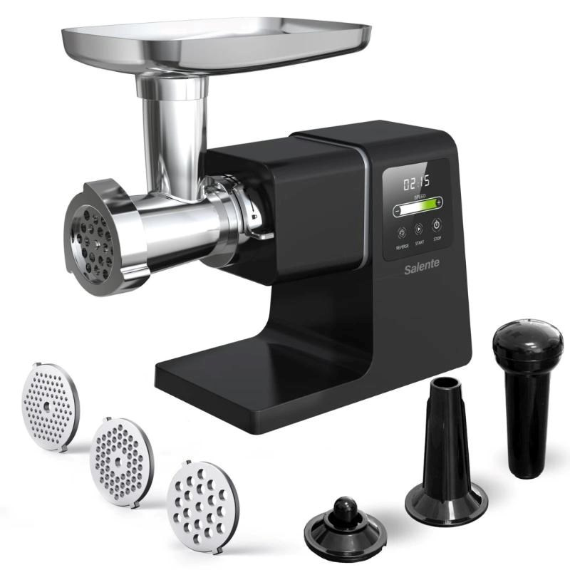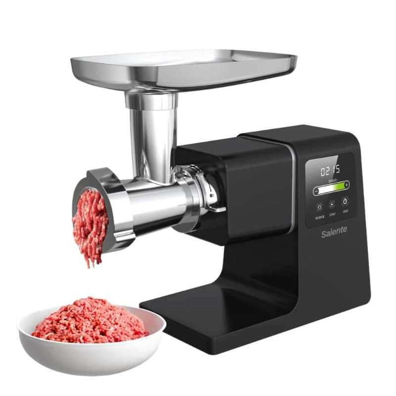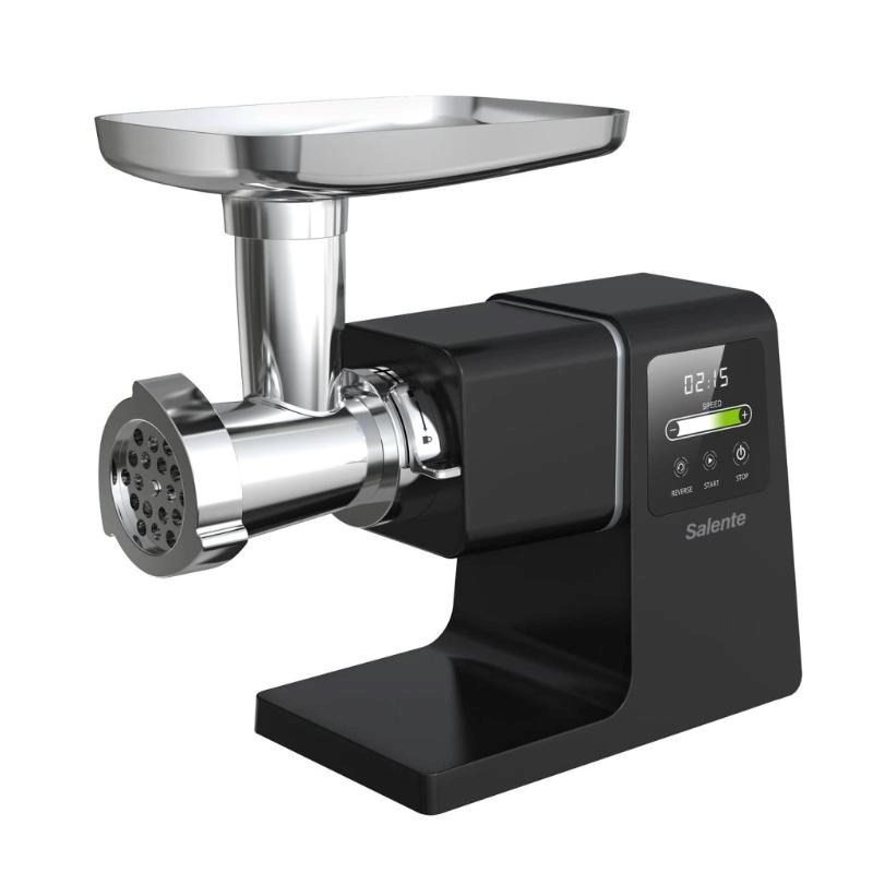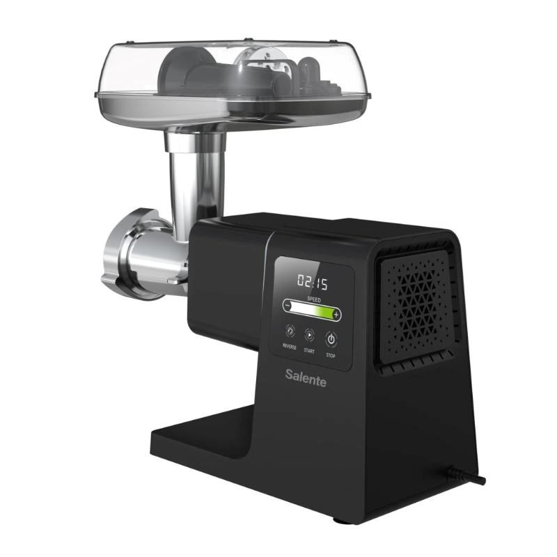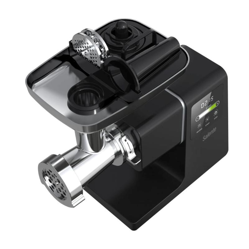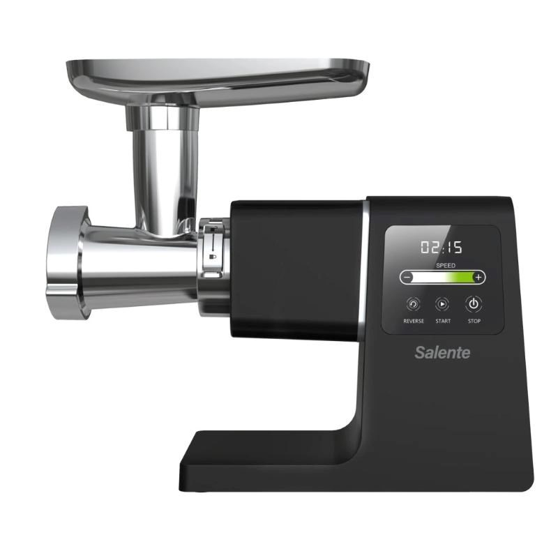 Vrcholem komfortu u masomlýnku Salente MeatPlus je dotykový digitální displej se sliderem tak, jak je znáte ze špičkových varných desek, kdy stačí prstem pouze lehce přejet doleva nebo doprava a hned se reguluje rychlost otáček. Tento způsob ovládání je nejen velmi moderní, elegantní, ale hlavně rychlý a zaručuje dlouho životnost na rozdíl od běžných mechanických ovládacích prvků. Umíte si to představit – máte ruce od masa a tuku a potřebujete rychle a spolehlivě regulovat otáčky a tím i rychlost mletí. Displej pak stačí otřít vlhkým hadříkem a je hotovo.