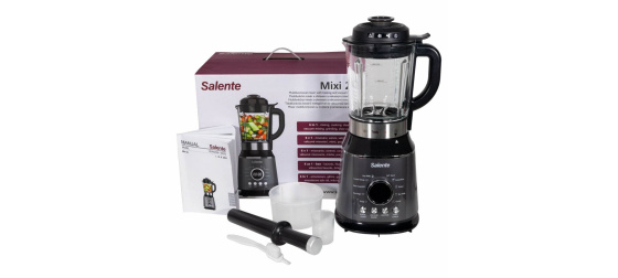 Stolní mixér Salente Mixi 2L je multifunkční vysokorychlostní mixér, který má mimo mixování i funkci vaření, vaření v páře, pomalé vaření a vakuové mixování. Uvaříte v něm svíčkovou, krémovou polévku, klasickou polévku, cizrnovou kaši a připravíte i marmeládu nebo sojové mléko. Mixér má 10 automatických programů: sójové mléko, krémová polévka, pomalé vaření 85°C, kaše, klasická polévka (bez mixování), dětské jídlo/džus, smoothie, koktejl, ořechové mléko a program pro mixování (bez vaření).