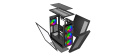 Tato PC skříň je sídlem nejen pro váš hardware, ale i pro čtveřici ventilátorů Infinity Mirror. Ty jsou strategicky rozmístěny a perfektně vyzbrojeny pro boj proti přehřívání počítače, ovšem jak je u EVOLVEO Scorpio-BK-4 dobrým zvykem, dbají i na eleganci. Zdobí je Multi ARGB podsvícení s 22 LED diodami (8 uprostřed a 14 na vnějším obvodu každého ventilátoru), doplněné o působivý zrcadlový design. Díky soustavě zrcadel se světlo odráží a znásobuje, až se vám zdá, že v PC skříni svítí stovky žároviček. Jde o opravdu úchvatný efekt, který dává herní atmosféře tu pravou šťávu. Styl podsvícení ventilátorů můžete nechat na vaší základní desce nebo ho mít díky tlačítku v pravé horní části skříně ve vlastní režii. K dispozici máte 14 barevných režimů, od jednobarevného osvětlení přes decentní prolínání barev až po futuristické blikací módy.