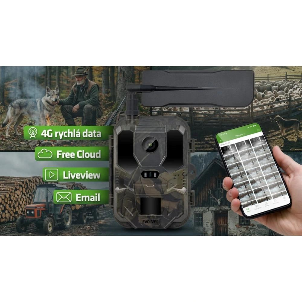 Současně je k dispozici také cloudové úložiště zdarma, které slouží jako rychlý přehled posledního dění. Záznamy se automaticky ukládají na cloudové servery a jsou dostupné v aplikaci EVOLVEO CAM v optimalizované velikosti, aby byl přenos šetrný k datovému tarifu. Cloud funguje jako doplněk k lokálnímu ukládání na paměťovou kartu a umožňuje mít nejnovější snímky vždy po ruce, i když zrovna nejste u počítače nebo fotopasti.