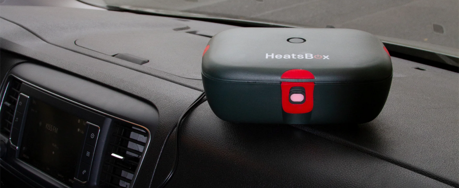 Faitron HeatsBox DRIVE je chytrý ohřívací obědový box do auta, karavanu nebo kamionu, který umožňuje pohodlný ohřev jídla bez mikrovlnky. Napájí se z 12V/24V zásuvky, ohřívá pokrm za přibližně 15–25 minut, dosahuje až 85 °C a lze jej ovládat tlačítkem i přes mobilní aplikaci HeatsBox. Díky nerezové vnitřní misce, těsnému provedení a kompaktním rozměrům je ideální pro řidiče, pracovní cesty i každodenní dojíždění.Více