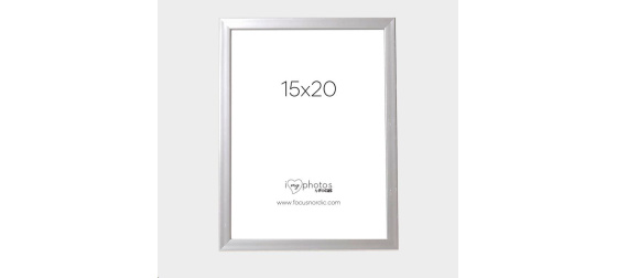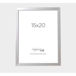 Stříbrný obrouček s tenkým profilem. Obrouček je vyrobený z plastu. Rámeček se dodává se skutečným sklem, které na fotografiích zvýrazní to nejlepší. Se stojánkem vzadu, který umožňuje umístit rámeček na polici nebo stůl. Profil rámečku má hloubku 13 mm a šířku 13 mm. Velikost obrázku v rámečku je 15x20 cm.