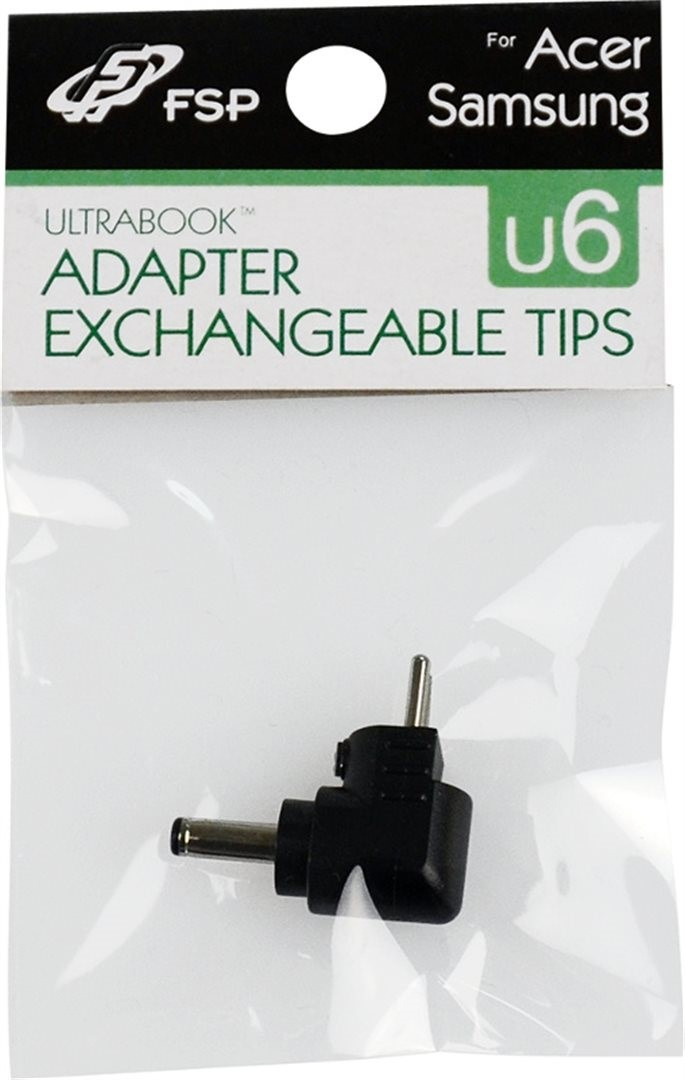 •vyměnitelná koncovka pro adaptéry FSP/Fortron•koncovka pro ultrabook (Acer, Samsung)•číslo koncovky: U6•barva: černá•rozměr vnější: 3•rozměr vnitřní: 1,1•délka: 8,2•retailové balení v sáčku