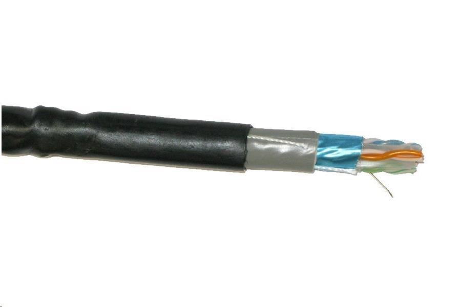 FTP kabel PlanetElite, Cat6, drát, dvojitý venkovní PE+PVC, Dca, černý, 500m, cívka