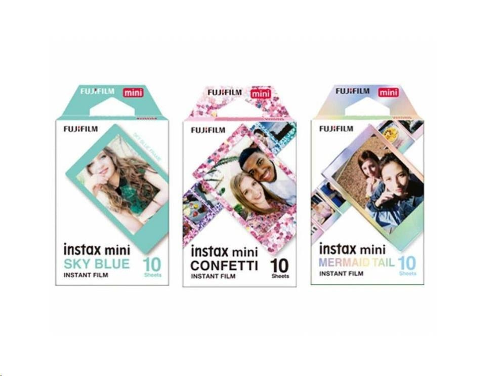 Exkluzivní balení filmů Instax Mini. Každý ze tří balíčků nese jedinečný design rámečku, což vám dává možnost vytvořit fotografie, které nejen zachycují okamžiky, ale také vyprávějí svůj vlastní příběh plný kreativity a osobního výrazu. Užijte si okamžité tisky s Instax Mini a udělejte své vzpomínky ještě výjimečnějšími. Balení zahrnuje tři odlišné designy okrajů: CONFETTI pro veselé okamžiky, SKY BLUE pokud chcete vyjádřit pozitivní náladu a harmonii a duhový okraj MERMAID TAIL pro nádech kouzla a fantazie.. FUJIFILM CZ, s.r.o., U Nákladového nádraží 1949/2 130 00 Praha 3 Žižkov, info_ffcz@fujifilm.com