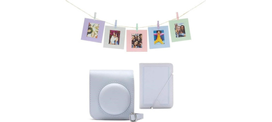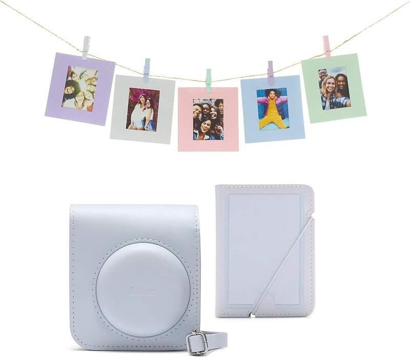 Oficiální sada příslušenství pro instax mini 12 obsahuje: barevně sladěné pouzdro s nastavitelným ramenním popruhem, mini fotoalbum na 29 fotografií s krycím páskem a sadu 10 závěsných kartiček se šňůrkou. Ideální balíček příslušenství barevně sladěný s pěti barvami fotoaparátu – Pastelově modrá, Mátově zelená, Květinově růžová, Fialová šeříková a Hliněně bílá. Jedinečný doplněk pro váš fotoaparát instax mini 12.