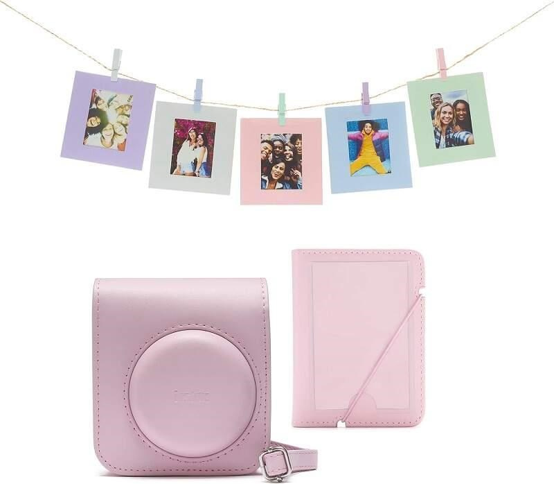 Oficiální sada příslušenství pro instax mini 12 obsahuje: barevně sladěné pouzdro s nastavitelným ramenním popruhem, mini fotoalbum na 29 fotografií s krycím páskem a sadu 10 závěsných kartiček se šňůrkou. Ideální balíček příslušenství barevně sladěný s pěti barvami fotoaparátu – Pastelově modrá, Mátově zelená, Květinově růžová, Fialová šeříková a Hliněně bílá. Jedinečný doplněk pro váš fotoaparát instax mini 12.
