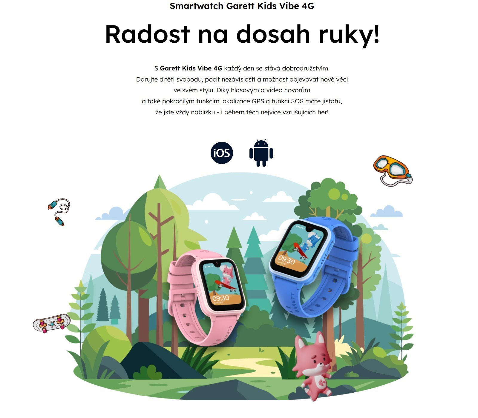 • Dětské hodinky s Garett AI, GPS a rodičovským dohledem
