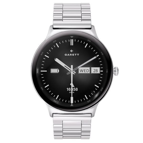 Hodinky jsou kompatibilní se systémy Android a iOS. Aplikace Garett Smart poskytuje přehledné statistiky aktivit a zdravotních údajů.
