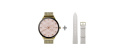 Balení obsahuje dva řemínky: kovový (milánský nebo ocelový podle zvolené varianty) a bílý řemínek z ekologické kůže. Díky snadné výměně lze styl hodinek přizpůsobit dennímu i večernímu nošení – elegance a praktičnost v jednom.