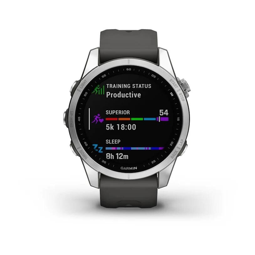 Garmin Fēnix 7S Glass Silver/Graphite Silicone Band jsou výjimečné multisportovní chytré GPS hodinky navržené pro náročné sportovce, outdoorové nadšence a všechny, kdo vyžadují robustní výkon i při každodenním nošení. Kombinují špičkovou navigaci, pokročilé měření zdraví a výdrž baterie, kterou jinde nenajdete – a to vše v elegantním, odolném těle s Corning® Gorilla® Glass DX.