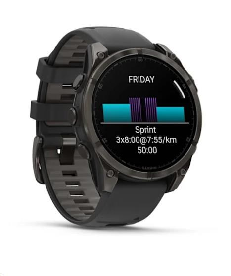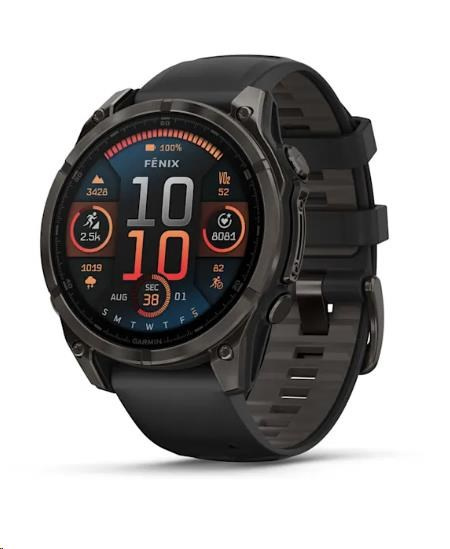 Popis Garmin fenix® 8 – 47 mm, AMOLED, Sapphire, Carbon grey DLC titanium s Black/Gray silikonovým řemínkem, EU
