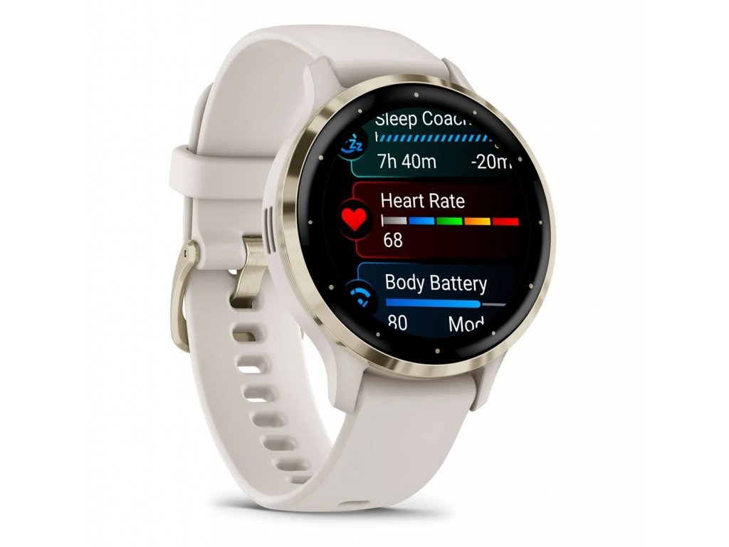 Popis Garmin Venu® 3S, Nerezová luneta Soft Gold, pouzdro Ivory, silikonový řemínek