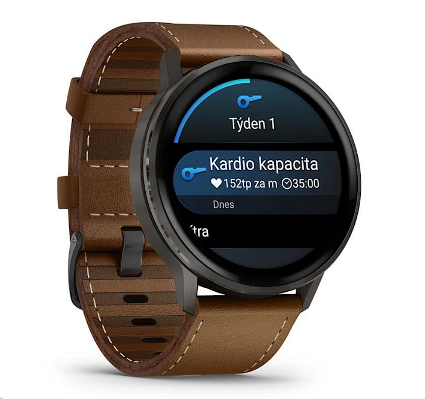 Garmin Venu 4 (45 mm) jsou prémiové chytré GPS hodinky pro uživatele, kteří chtějí spojit elegantní vzhled, pokročilé zdravotní funkce a sportovní výbavu do jednoho zařízení. Varianta Slate s černým silikonovým a přibaleným hnědým koženým řemínkem působí reprezentativně při sportu, v práci i při každodenním nošení.