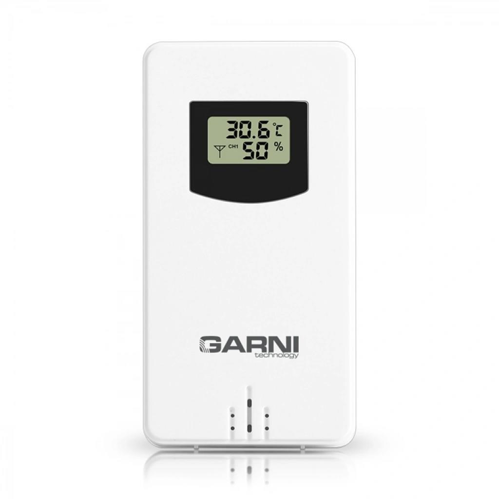 Bezdrátové čidlo pro měření teploty a relativní vlhkosti, určeno pro meteorologické stanice GARNI 439 Line, GARNI 545 Line vlhkosti odolné, krytí IPX4 (odolné proti stříkající vodě) displej o rozměrech 19 x 11 mm velikost číslic na displeji: teplota a relativní vlhkost 4 mm měření teploty a relativní vlhkosti 3 kanály maximální RF výkon 10 dBm (10 mW) možnost postavení a zavěšení barva bílá. GARNI technology a.s., Suchardova 1687/1 702 00 Ostrava Czech Republic, info@garni-meteo.cz