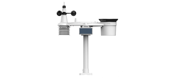 Integrované bezdrátové čidlo 7-v-1 GARNI 1NG měří vnější teplotu a relativní vlhkost, rychlost a směr větru, dešťové srážky, UV index a sluneční záření, a data jsou odesílána do hlavní jednotky až do vzdálenosti 150 m (v otevřeném prostoru).