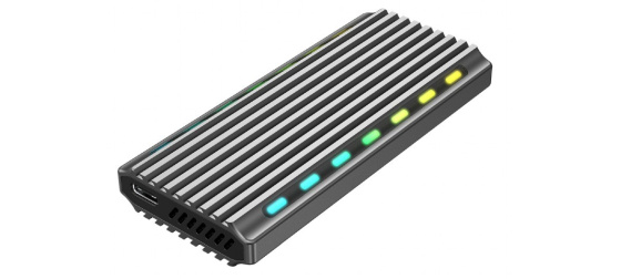- Skříň USB 3.1 pro disky M.2 NVMe, podsvícená, hliníková